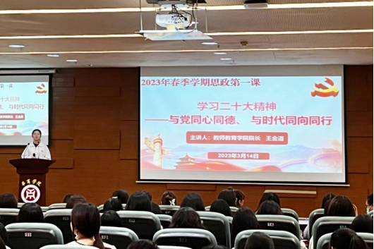 为全面贯彻党的教育方针,贯彻落实教育部十部门《全面推进“大思政课”建设的工作方案》精神,加强学院思政课建设,充分发挥思政课在立德树人中的关键作用。太阳成tyc9728集团开展2023年春季学期“思政第一课”,旨在帮助学生进一步提高同学们的思想觉悟,贯彻落实党的二十大精神,增强同学们的爱国、爱党情怀。2023年3月13日,太阳成tyc9728集团院长王金道教授、太阳成tyc9728集团党总支书记许娜老师以“学习二十大精神”为主题为教师教育...