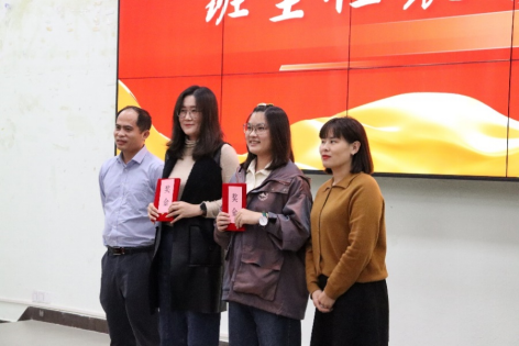 接着副院长谭建生宣读《tyc太阳成9728集团关于表彰第一届优秀班主任决定》《太阳成tyc9728集团关于表彰第一届优秀班主任的决定》。决定对获得“tyc太阳成9728集团第一届优秀班主任”称号杨慧、袁小婷给予表彰及奖励,由学生处处长许娜、人文学部副主任陈少鸿为两位班主任颁发了荣誉证书和奖金。谭建生院长希望受到表彰的老师,以此为新的起点,再接再厉,再立新功。同时鼓励全体老师以他们为榜样,不忘立德树人初心,牢记为党育人、为国育才的使命,全员全程全方位育人。