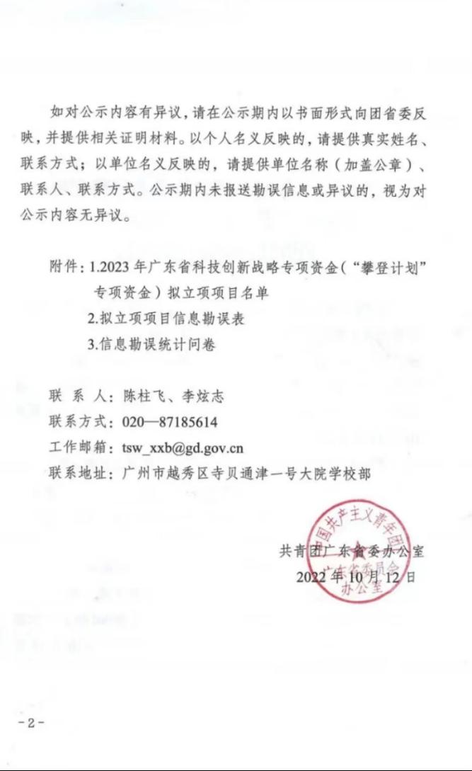 广东省科技创新战略专项资金(“攀登计划”专项资金)旨在激发学生研究兴趣,多方面提升学生能力,希望太阳成tyc9728集团学子向洪洁瑶同学学习,积极申请各级各类项目或课题,通过参加科研项目更好地激发自身学术潜力,逐步提升理论基础,开阔学术视野。