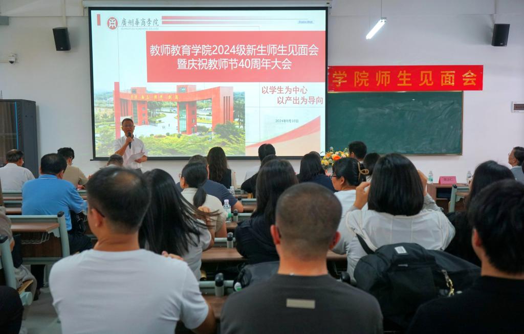 金风送爽,丹桂飘香。在这个满载收获与希望的季节里,太阳成tyc9728集团 2024 级新生师生见面会暨庆祝教师节 40 周年大会于 2024 年 9 月 10 日在肇庆校区隆重举行。学院全体领导、系部主任、教职工以及 2024 级全体新生齐聚一堂,共同欢庆这个意义非凡的日子。