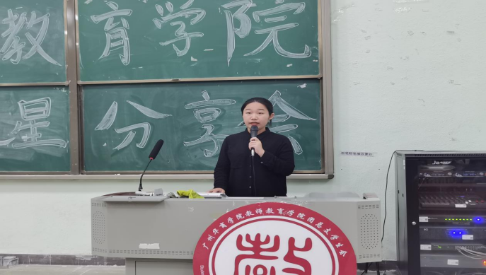 第二位进行分享的是”文艺之星“19级学前教育3班的胡新瑜师姐,总体从追寻者、奔赴者、心得体会三方面向我们分享了自己对文艺的热爱。选择自己所热爱的,热爱自己所选择的。保持态度,坚持热爱,成就自我。