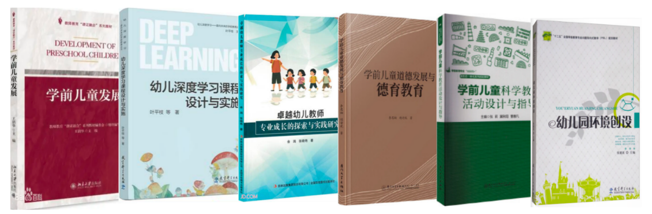 在多年教育改革实践的基础上,本专业取得了一系列有代表性的教学研究成果,编纂出版了《早期教育教师与家长沟通的理论与实践》《学前儿童发展》《幼儿园语言教育与活动指导》《幼儿园环境创设》等教材。