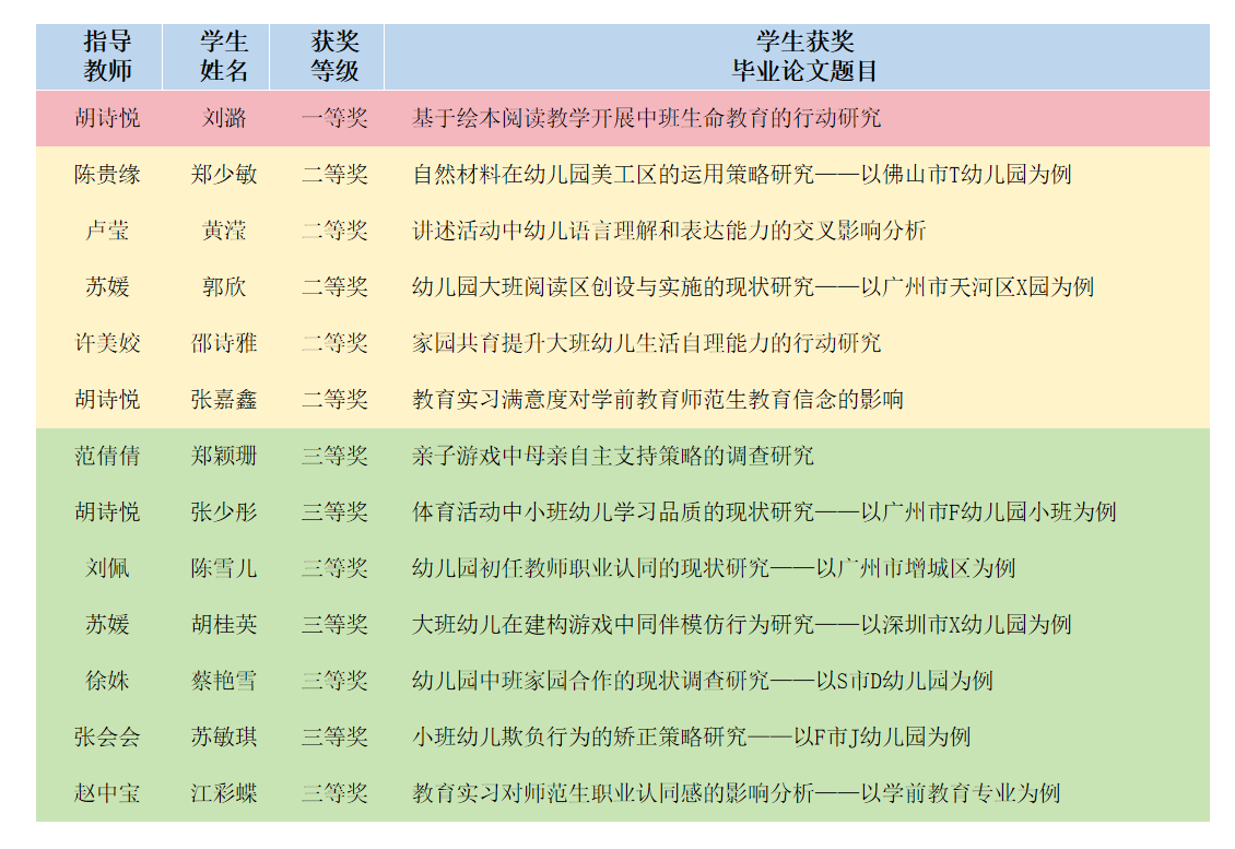 吴钰、钟嘉颖同学荣获全国高校学前(幼儿)教育专业优秀毕业论文评选活动一等奖 |