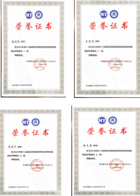 曾宛尹和梁木英同学荣获全国高校学前教育师范生教学技能测试大赛三等奖 |