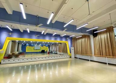 功能简介:舞蹈教学实训室配有把杆、玻璃镜面、灯光音响等专业设备。主要承担学前教育专业学生舞蹈及声乐课程的实践教学任务。在结合幼儿身心特点以及幼儿园教学特点的基础上对学生进行幼儿舞蹈创作编排和声乐方面的能力训练,使学生将所学的基础知识运用到实践中来,实现现代社会对幼儿教师舞蹈和声乐方面的需求。