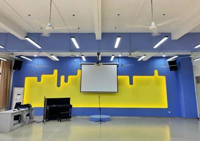 功能简介:舞蹈教学实训室配有把杆、玻璃镜面、灯光音响等专业设备。主要承担学前教育专业学生舞蹈及声乐课程的实践教学任务。在结合幼儿身心特点以及幼儿园教学特点的基础上对学生进行幼儿舞蹈创作编排和声乐方面的能力训练,使学生将所学的基础知识运用到实践中来,实现现代社会对幼儿教师舞蹈和声乐方面的需求。