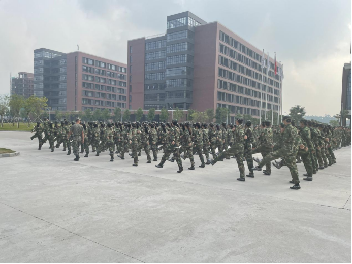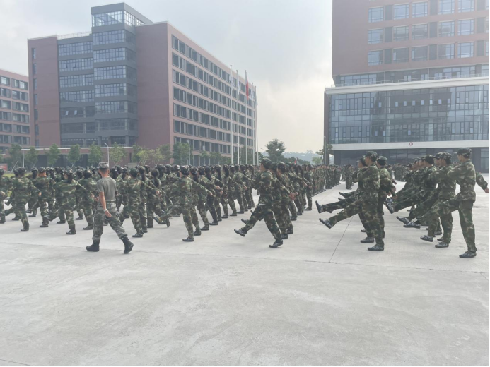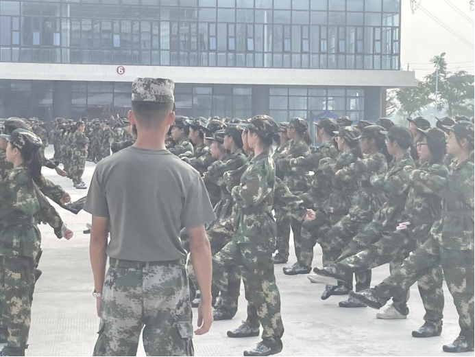 在火红的烈日下他们坚持训练,喊着铿锵的口号,踏着整齐的步伐,抬起坚毅的面孔。耐心指导的教官与认真操练的同学们心中充满了奋进和希望。阳光愈烈,斗志愈昂扬。