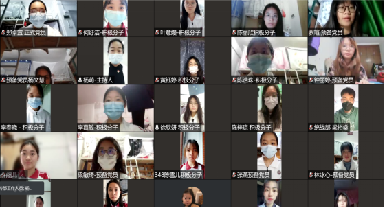 首先,彭博娜副书记对习近平总书记关于疫情防控重要讲话主要内容进行了介绍。她指出,习近平总书记的重要讲话和一系列重要指示深刻阐述了疫情防控的重大意义、基本策略和重点举措,作为践行“两个维护”的第一方阵,学生干部、入党积极分子、发展对象、党员在疫情防控战役中肩负着特殊重要职责,要进一步增强“四个意识”、坚定“四个自信”、做到“两个维护”,带头坚决贯彻落实习近平总书记重要讲话和一系列重要指示精神,牢记人民利益高于一切,生命至上,紧密结合岗位职责,科学研判疫情形势,准确把握疫情变化,不断完善防治举措,坚持以科学的方法切实提高疫情防控的针对性和有效性,不造谣,不传谣,从自身做起,坚持每天早上8:00前完成在华商E家的健康打卡、接龙报体温、及时查看健康码颜色,遇到变码的情况务必及时上报辅导员。每天9:00前要及时上报辅导员老师。不得拖延和隐瞒。以实际行动践行听党话、跟党走的初心使命,体现大学生该有的使命担当,体现党员的先锋模范带头作用