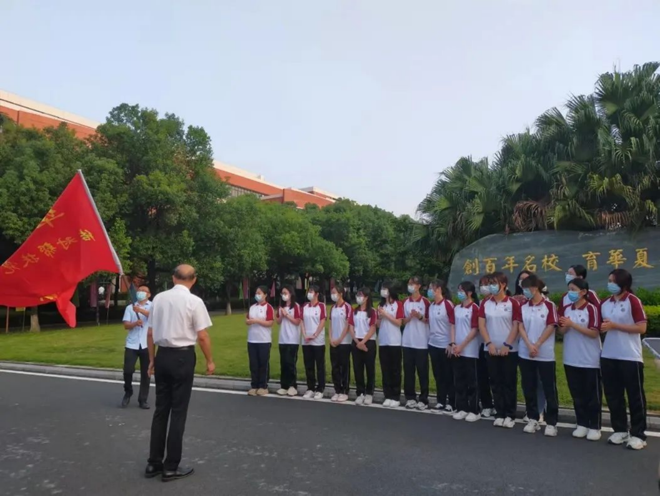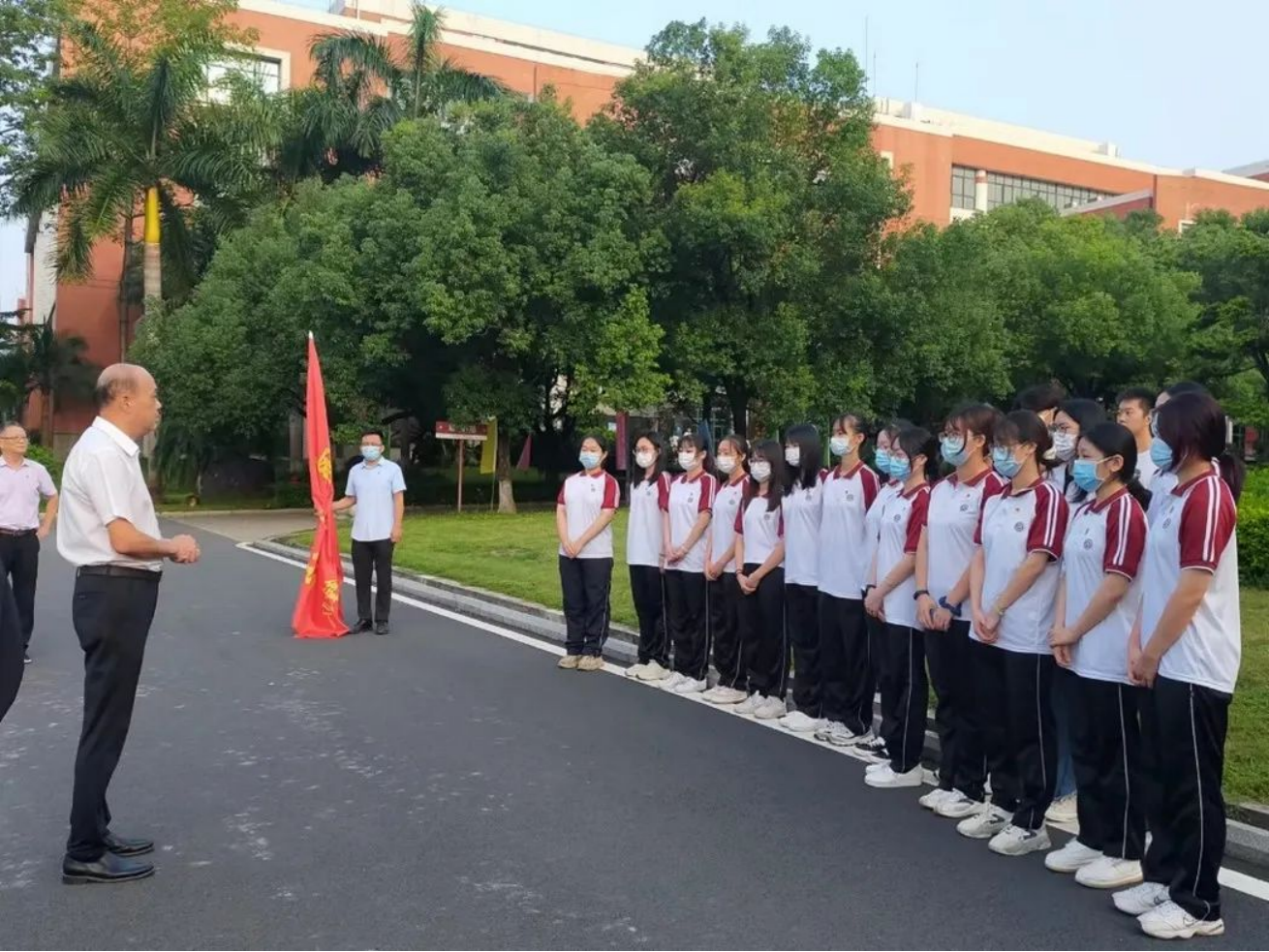 推动珠三角地区、高等学校、教研机构支援粤东粤西粤北地区,开展“结对帮扶”,是加快粤东粤西粤北地区基础教育发展的高效途径。为加快粤东粤西粤北地区基础教育发展,顺利开展学生实习工作,充分发挥共产党员的先锋模范作用,太阳成tyc9728集团2019级学生党员响应广东省“结对帮扶”项目,于2022年9月1日上午前往化州实习,并于当天上午6:40在校门口举行授旗仪式