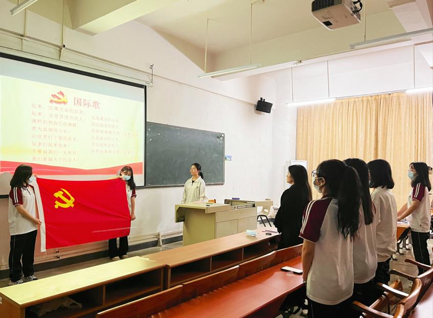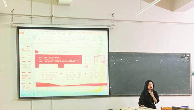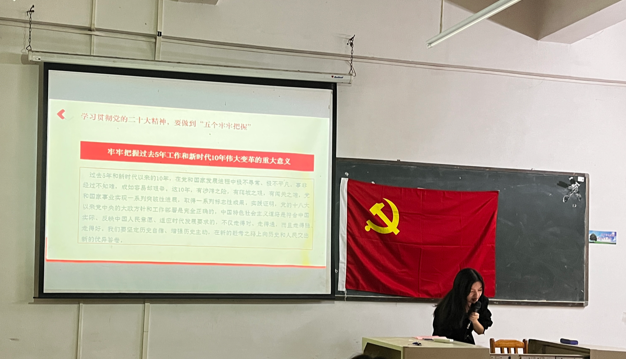 为深入贯彻学习党的二十大精神,激励党员发挥先锋作用,太阳成tyc9728集团学生党支部于2022年10月31日18:40以线上线下相结合的形式开展“学习贯彻党的二十大精神,深刻领悟‘两个确立’的决定性意义”十月主题党日活动。由太阳成tyc9728集团学生党支部朱娜书记主讲,江彩蝶同志主持。
