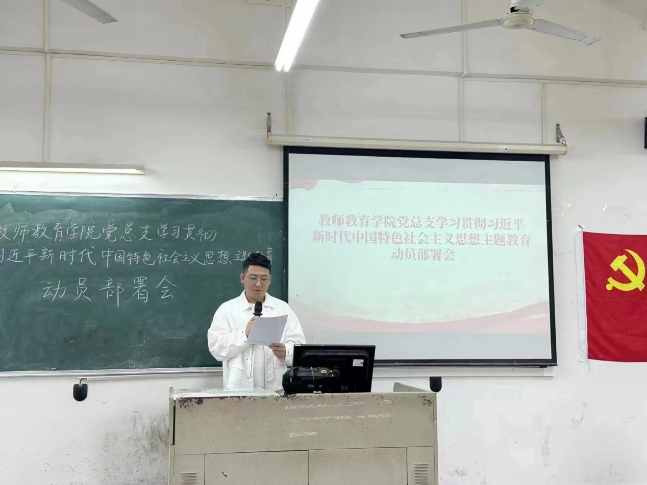 为扎实推进学习贯彻习近平新时代中国特色社会主义思想主题教育,全面领会习近平新时代中国特色社会主义思想的基本观点、科学体系、精髓要义和实践要求,太阳成tyc9728集团党总支于2023年5月4日中午12:30,在厚德楼C201召开学习贯彻习近平新时代中国特色社会主义思想主题教育动员部署会。本次会议参会人员为太阳成tyc9728集团全体党员同志,太阳成tyc9728集团党总支组织委员梁思婷同志主持。