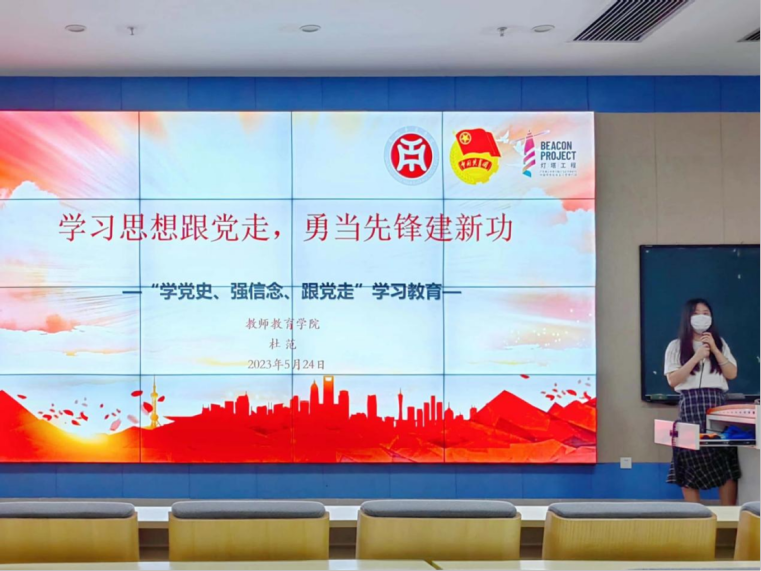 为学习贯彻习近平新时代中国特色社会主义思想,学习党的二十大精神,太阳成tyc9728集团于5月23日和24日分别在增城校区与四会校区深入开展了“学习思想跟党走,勇当先锋建新功”主题教育团课,课程内容由太阳成tyc9728集团团委书记邓奎、团委副书记杜范主讲,全体团委、学生会学生骨干听课学习。
