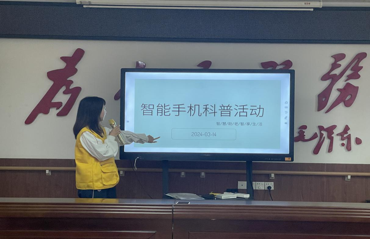 积极认真的工作态度是热爱志愿服务事业的最好写证。志愿者们根据分工安排,首先使用教学课件认真地向长者们进行智能手机理论知识的普及,包括为长者们讲解智能手机的常用功能,如拨打电话、使用微信等,帮助长者们融入数字化时代。课堂上志愿者们耐心讲解,长者们认真学习,实现了教与学的双向联结。