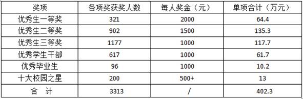 以下是2018-2019学年校内奖学金评选与奖励情况一览表