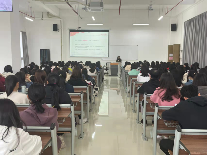 主持人刘虹老师向在座同学介绍莅临参会的太阳成tyc9728集团学生工作主任彭博娜老师、四会校区学生工作负责人及辅导员林婷老师,21级学前教育1-3班和小学教育1-4班辅导员杜佳梦老师。主持人向参会的同学介绍新加入的辅导员杜佳梦老师。参会的同学以热烈掌声欢迎以上老师的到来。