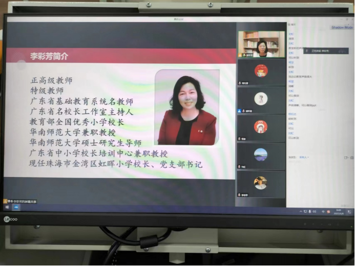 见习第一天上午,指导老师们组织全体学生聆听教育部全国优秀小学校长,广东省中小学名校长工作室主持人李彩芳校长的线上《看似寻常最奇崛 成如容易却艰辛---给小学教育专业同学们的几点建议的讲座。李校长从教师的职业行为准则,小学教师的教学基本功和教育情怀与责任担当等方面,结合自身的成长经历,图文声茂,给师生们做了一次非常精彩而又深刻的讲座。