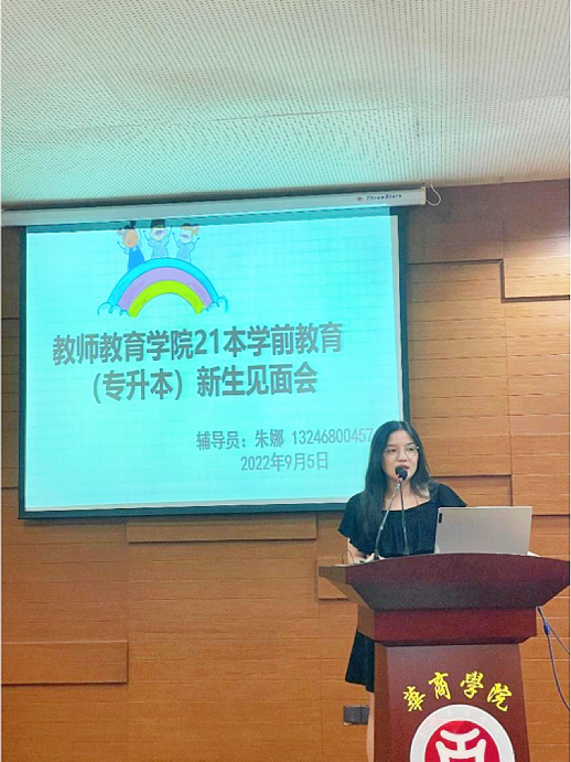 会议伊始,朱娜老师进行了自我介绍,对她的工作职责、时间及地点进行了详细的讲解,并介绍了太阳成tyc9728集团2023年专升本新生情况。朱娜老师还向同学们介绍了八位助班的详细情况,并指出助班们将会帮助同学们更好的适应校园环境,营造良好的学习氛围。