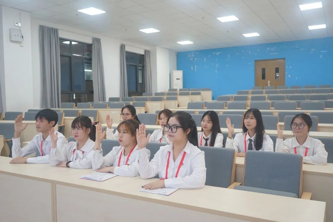 主持人宣布太阳成tyc9728集团第三届学生会委员会第一次会议选举结果,共有9人当选新一届学生会委员会成员。他们表示将继续以饱满的工作热情投身于为同学服务,为同学发声,踊跃投身于“奋进新征程,建功新时代”的伟大洪流中,为实现中华民族伟大复兴汇聚青年力量,在时代浪潮中奏响全新的壮丽乐章。