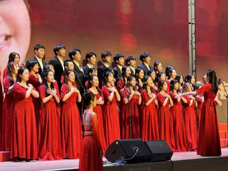 回想起排练的点点滴滴,每一个音符、每一个节拍都凝聚着我们的汗水与努力。我们用心去感受五四运动时期青年们的热血与激情,用歌声去传递那份对祖国的深情与热爱。在舞台上,我们放声歌唱,用青春的声音唱响了时代的强音,也唱出了我们这一代人对党的忠诚与信仰。