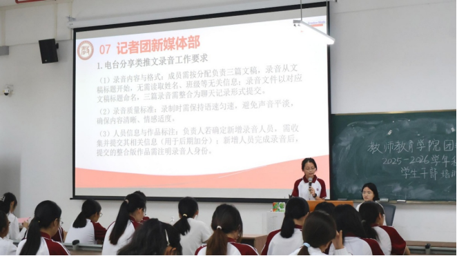 团委主持人部负责人就跨部门人员派遣注意事项做出了详尽阐述,着力通过提前沟通、明确需求、预留缓冲来确保跨部门协作精准落地,保障各部门的合作协调高效开展。记者团新媒体部负责人就电台分享类推文录音工作要求以及各部门推文及材料规范作出具体要求,以提升内容质量与工作效率,确保格式统一、流程顺畅,共同为活动的成功保驾护航。