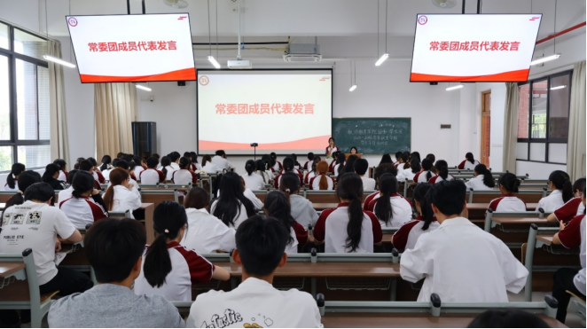 常委团成员代表沙淑怡提出了作为学生干部应牢记身份与职责、精诚团队合作、敢于创新开拓。她就此提出了三项关键要求:一是学生干部“服务者”与“连接者”的核心定位,牢记“从同学中来,到同学中去”的核心价值;二是个人要精通团结协作,营造和谐高效的工作氛围,推动团委·学生会整体高效运转;三是工作要落到实处的同时勇于开拓创新,结合太阳成tyc9728集团的特色与专业优势,运用新思维、新方法提升工作效能。她还向全体学生干部详细介绍了团委·学生会的架构,指出其是承担思想引领、活动组织、权益维护等职能的核心学生组织,是连接学院与学生的桥梁。