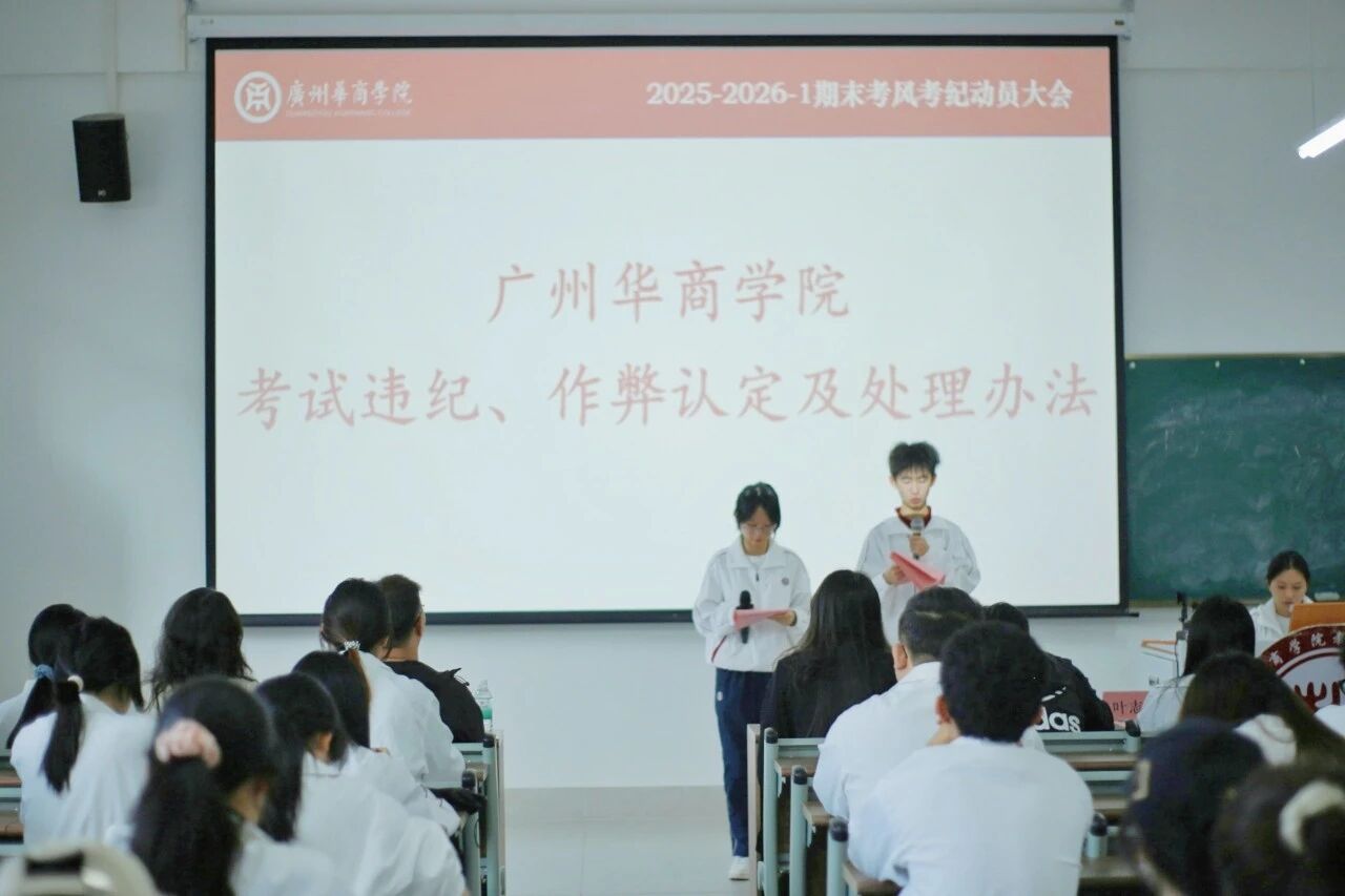 与此同时会议也紧密结合学校“廿载风华铸梦”的校庆气韵,引导学子以诚信应考为华商添彩,端正态度、扎实复习,以真实学识与严谨作风迎接期末考核。