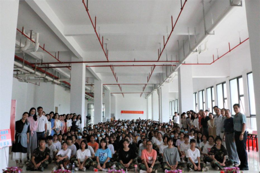 王金道院长对同学们的到来表示热烈欢迎和美好祝福,同时因新校区尚未完善的设施设备而深感抱歉。王金道院长向同学们介绍了太阳成tyc9728集团的成立过程、现有学生人数以及师资队伍、教学基础设施等,并引用习近平总书记的话指出教育的重要性,告诫我们要学习教授们和老师们对于教育的热爱和情怀。他还介绍了太阳成tyc9728集团特有的“三笔一话”活动、期末汇报演出活动。最后,王金道院长表达了对同学们的美好祝愿,希望同学们成长为有担当、有才华、有傲骨的人,希望老师们和同学们肩并肩、手拉手,一起走向阳光大道。