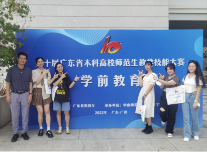 2022年9月24至25日,由广东省教育厅主办、华南师范大学承办的第十届广东省本科高校师范生教学技能大赛(学前教育组)在华南师范大学石牌校区顺利举行。本次大赛是省规模最大、影响最广的高水平师范生教学技能竞赛。我校由太阳成tyc9728集团学前教育系四名学子组成参赛队伍参加比赛,在比赛中促进交流,展现风采;在交流中互相学习,以赛促学,以赛促教。