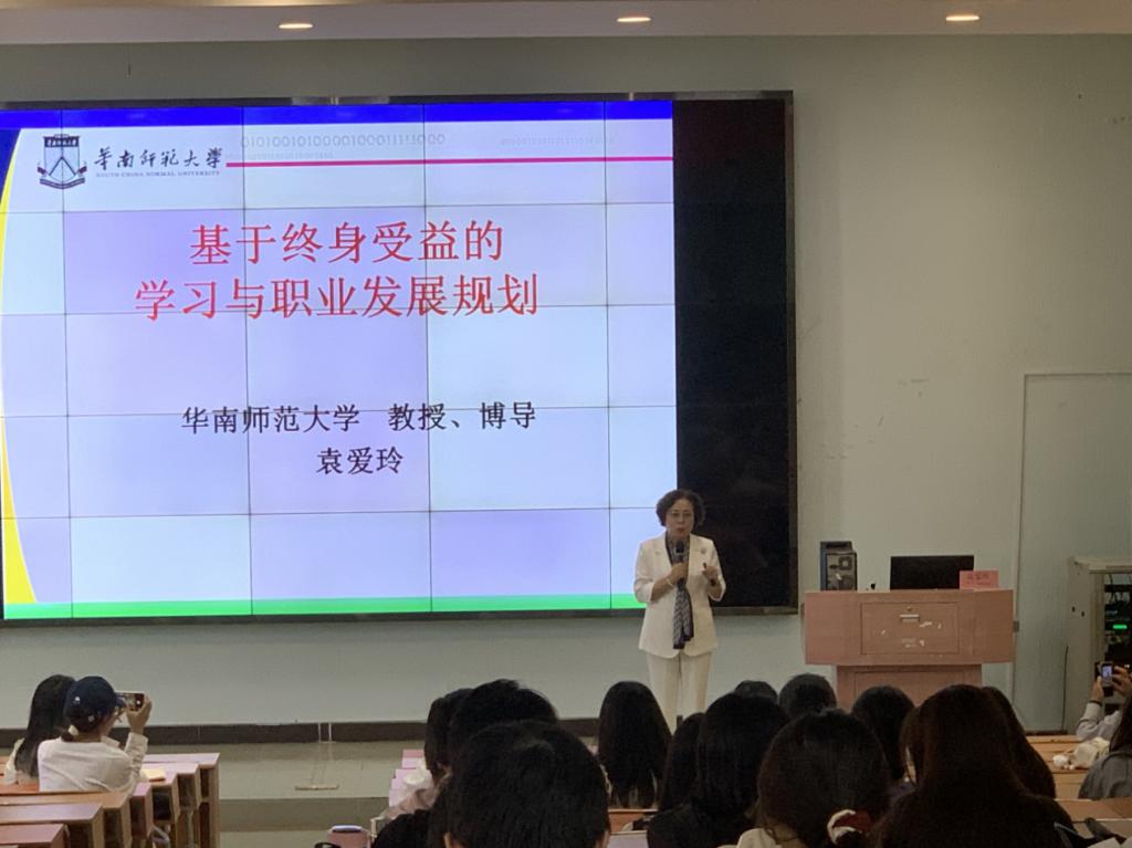 2024年11月7日,华南师范大学博士生导师袁爱玲教授在tyc太阳成9728集团广州校区励志楼C408举办一场题为“终身受益的学习与职业发展规划”的讲座,共吸引了学校200多名师生参加。