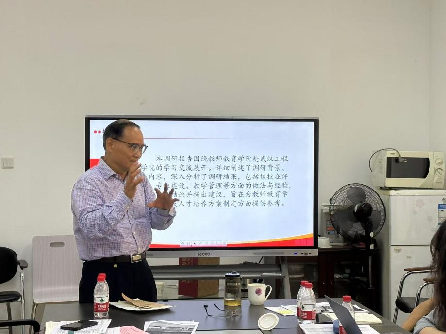 小学教育系王符教授从思政建设、学科专业建设、第二课堂建设等七个维度分享了学习交流心得,提出优化论文指导、强化实训室建设等具体建议,为学院迎接合格评估以及制定人才培养方案提供了重要的参考。