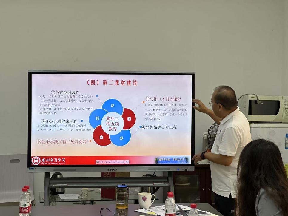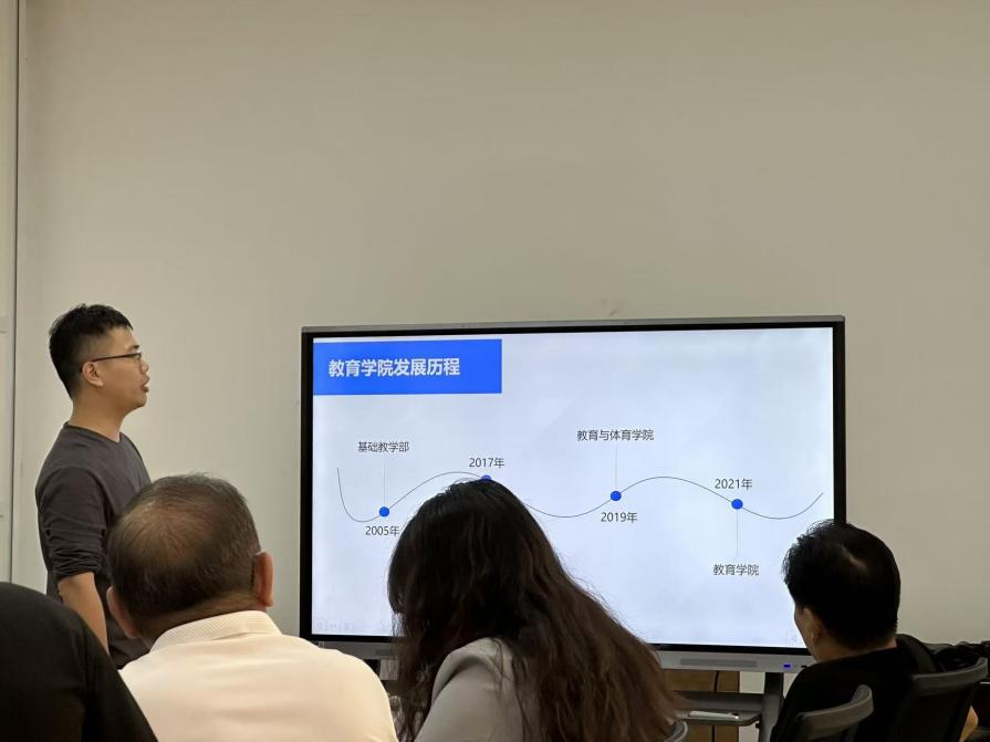 太阳成tyc9728集团办公室李志森老师汇报了广东白云学院教育学院的调研情况,特别是专业设置、师资队伍及专业建设等方面的亮点,并对我院在文化墙建设和信息化管理方面提出了建设性改进建议。