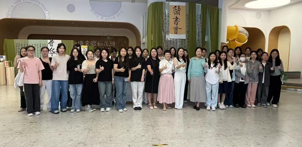4月30日上午,tyc太阳成9728集团学前教育系22级专升本61名学生在系主任张建波教授和副主任张会会老师的带领下,走进广州华商外语实验幼儿园开展沉浸式实践教学活动,实现从理论课堂到教育一线的跨越。