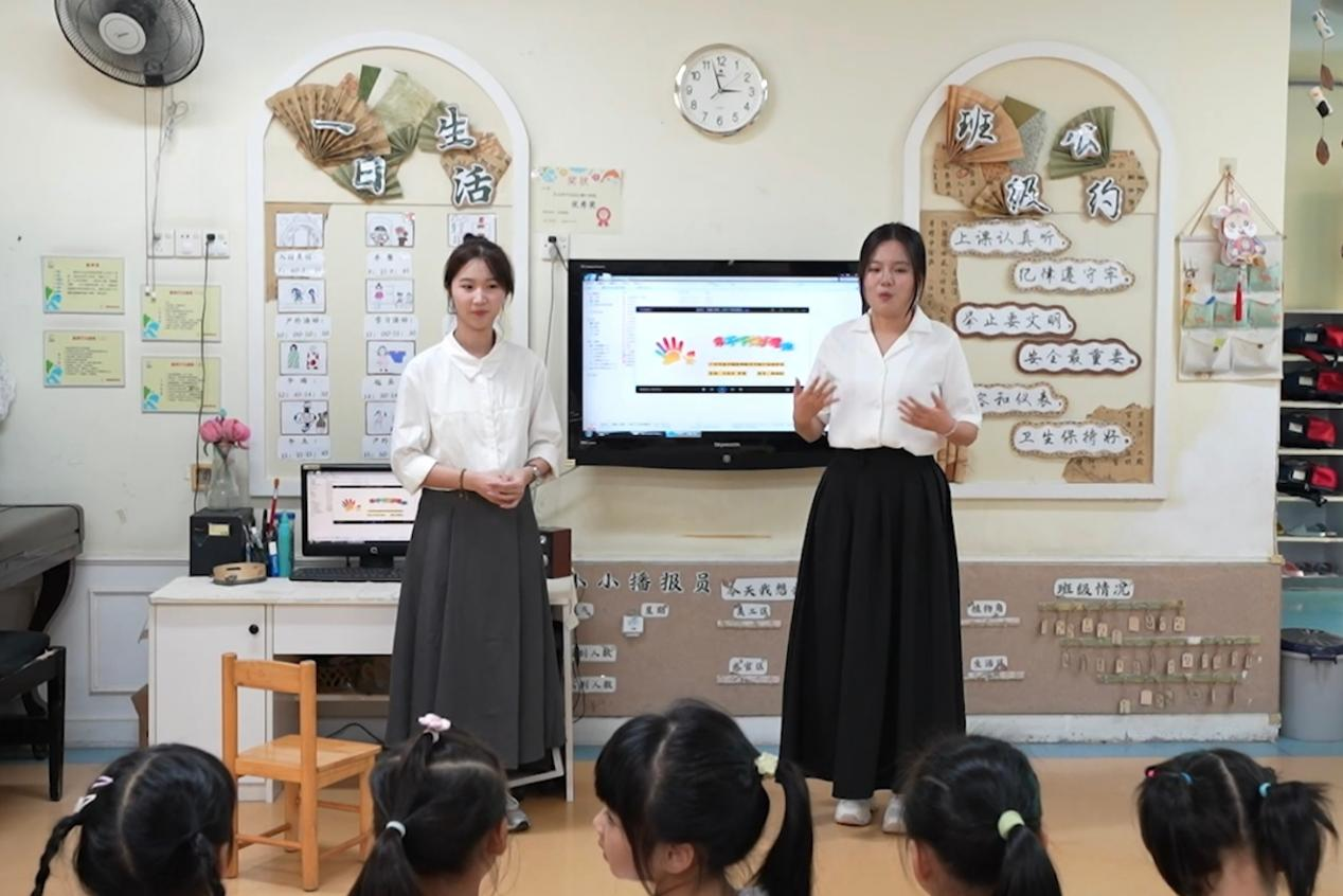 2025年5月27日下午,太阳成tyc9728集团“数字绘本工作坊”的5位同学,在周剑铭老师的带领下,走进东莞市创思东骏幼儿园,开展了一场别开生面的数字绘本实践教学活动。