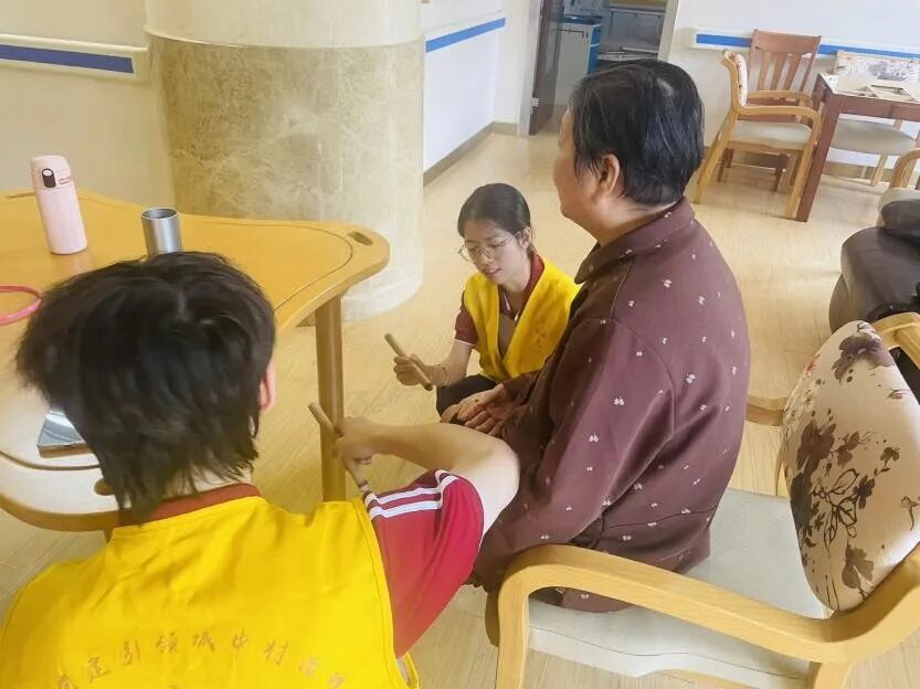 艾灸结束后,服务并未停止,真正的“暖心的陪伴”才刚刚开始——乒乓桌旁,老少同乐:球桌边,志愿者与长者“你来我往”,银球飞舞。有的爷爷宝刀未老,扣杀凌厉;有的志愿者则贴心地把球送到奶奶手边。胜负早已不重要,洋溢在脸上的笑容才是最好的战利品。闲话家常,倾听心声:更多的志愿者则静静地坐在老人身边,做一名专注的倾听者。听他们分享年轻时的故事,聊聊家长里短。对于许多长者而言,这份专注的陪伴和倾听,比任何物质关怀都更加珍贵。