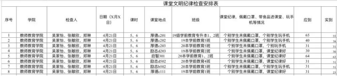 为了增强学生纪律观念,加强疫情防控意识,帮助同学们养成良好的生活习惯和学习习惯,4月份,由学工办彭博娜主任带领,太阳成tyc9728集团辅导员朱娜老师和辅导员丘依欣老师,以及团学干部干事和各班班委,组成了巡查小组,对太阳成tyc9728集团的课堂开展了巡查活动。