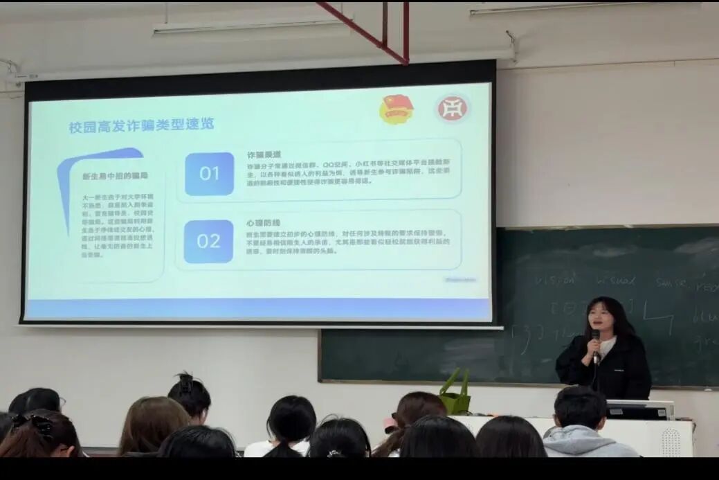 邓奎老师结合近期高校频发的网络诈骗案例,深入剖析了诈骗分子的常用手段与心理操控技巧。他通过真实案例讲解,提醒同学们警惕“刷单返利”“虚假客服”“校园贷”等高发诈骗类型,强调“天上不会掉馅饼”,呼吁大家筑牢心理防线,提升辨别能力。