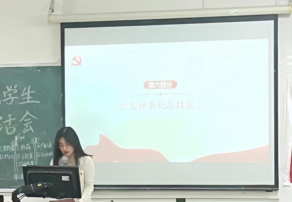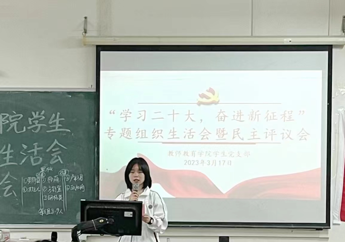 党的二十大是一次承前启后、继往开来的大会,必将以“高举旗帜、凝聚力量、团结奋进”,开创党和国家事业发展新局面而载入史册。为深入贯彻习近平新时代中国特色社会主义思想和党的二十大精神,加强党员队伍建设,充分发挥党员先锋模范作用,2023年3月17日中午12:15,太阳成tyc9728集团学生党支部于厚德楼C201召开专题组织生活会暨民主评议会。本次会议由方舒宜同志主持。