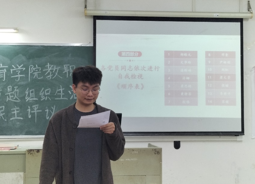 通过此次自我检视和民主评议,太阳成tyc9728集团教职工党支部深入剖析了工作中存在的问题与不足,探讨提出可行的整改措施和工作计划。同时,郑皓元书记呼吁太阳成tyc9728集团教职工党支部坚决贯彻落实会议精神,认真执行整改措施和落实工作计划,全面提高工作效率和质量,进一步加强党建工作和组织建设,为学院、教育事业和国家的发展做出积极贡献。