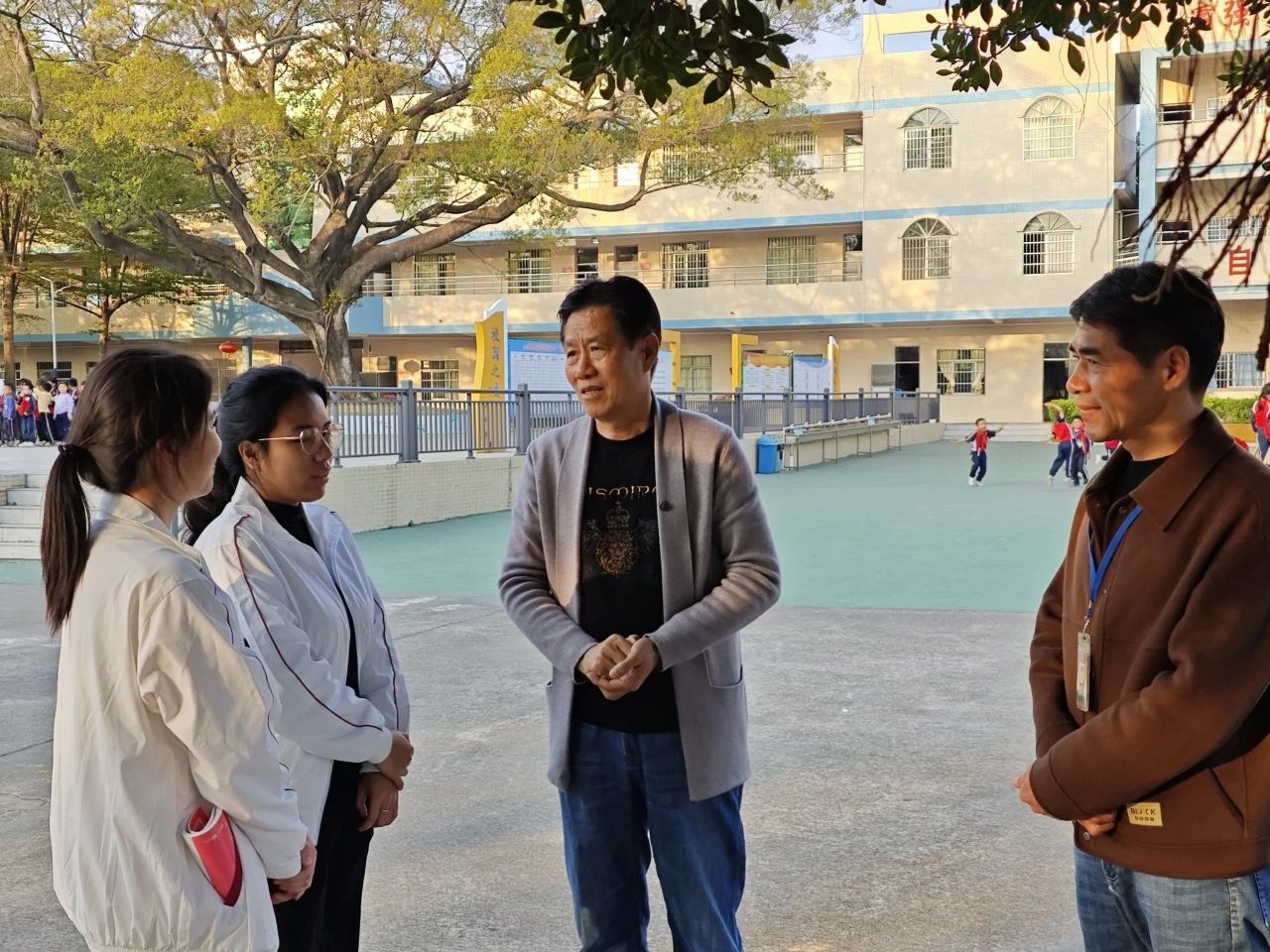 12月5日,为进一步了解小学教育专业见习学生的教学情况,切实关心和帮助太阳成tyc9728集团见习学生成长成才,太阳成tyc9728集团院长王金道教授、副院长谭建生教授、张博教授、学院党总支副书记许娜同志与年级副主任江庆基老师一行来到四会市东城街道黄岗小学走访交流。