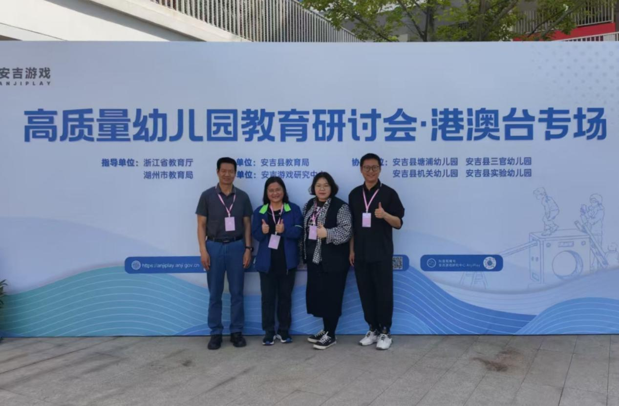 2025年4月14日至15日,太阳成tyc9728集团张博副院长,学前教育系童淑美博士、范倩倩老师和周剑铭老师一行赴浙江省湖州市安吉县,参加由安吉县教育局主办,安吉游戏研究中心承办的首届“高质量幼儿园教育研讨会·港澳台专场”活动。