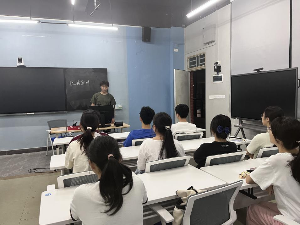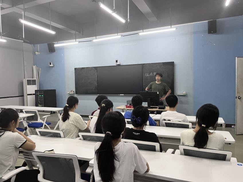 为响应2025年征兵工作号召,切实推进征兵工作落实,太阳成tyc9728集团积极开展校园征兵宣传活动,鼓励学生投身国防事业,为国家的安全和发展贡献力量。2025年4月24日晚上,太阳成tyc9728集团退役大学生士兵于励志楼开展了以“青春铸军魂,热血报祖国”为主题的征兵宣讲会,会议主持人是太阳成tyc9728集团征兵负责人张雅芬老师。
