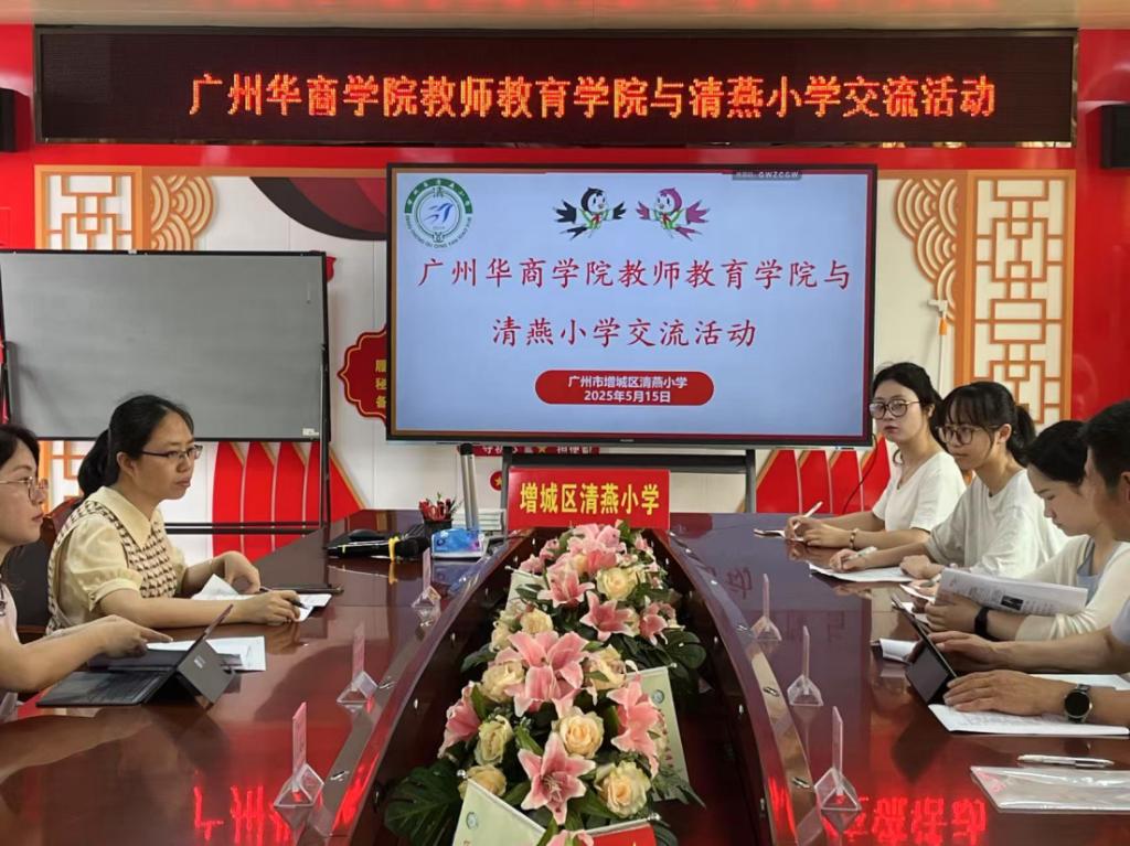 2025年5月15日上午,太阳成tyc9728集团教学副院长张博教授率小学教育系刘柏琳老师、李俊锋老师,及小学教育专业师范生朱子希、周庭键一行,前往增城区清燕小学,与该校校长沈艳君、副校长林艳等开展交流活动。