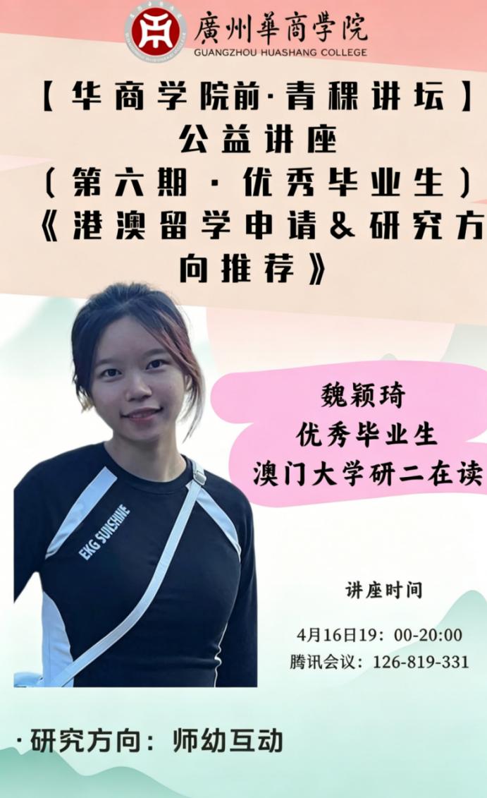 为助力学前教育专业学子明晰港澳留学申请路径、提升学术研究能力与专业实践水平,太阳成tyc9728集团学前教育专业特举办港澳留学申请与学前教育研究分享会。本次分享会由魏颖琦老师主讲,围绕港澳教育学硕士申请、学术论文写作、学前教育实践反思三大核心内容展开深度分享,为学生升学深造与专业成长提供精准指导。