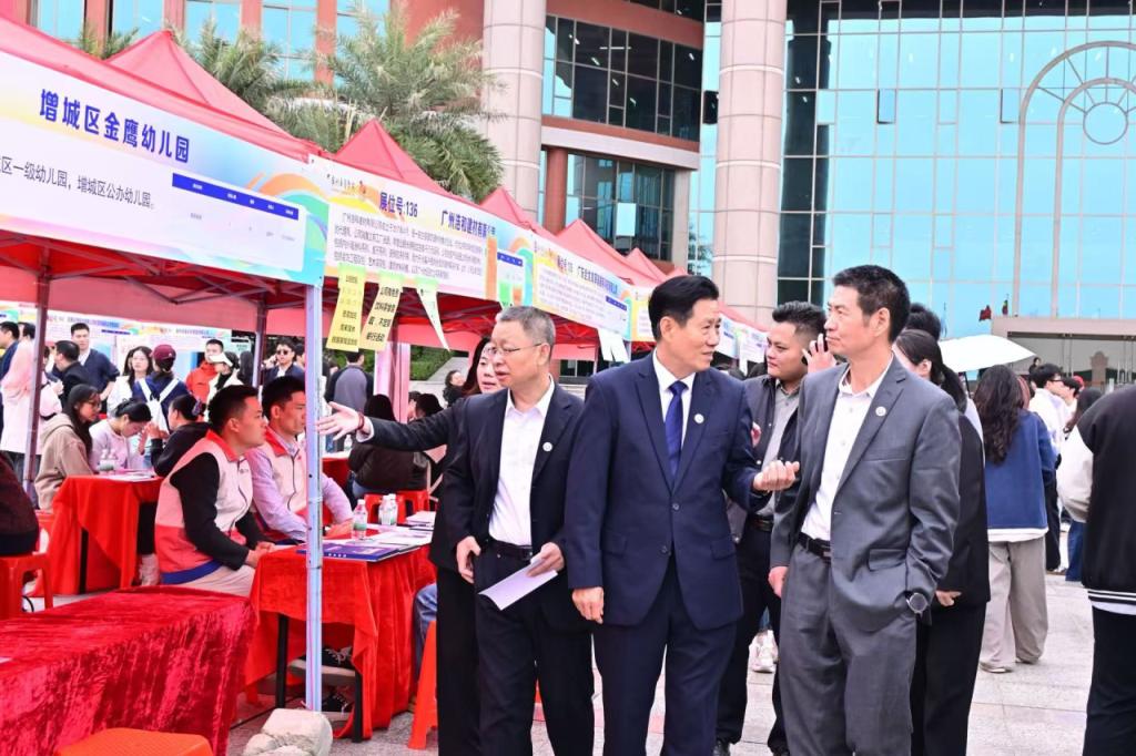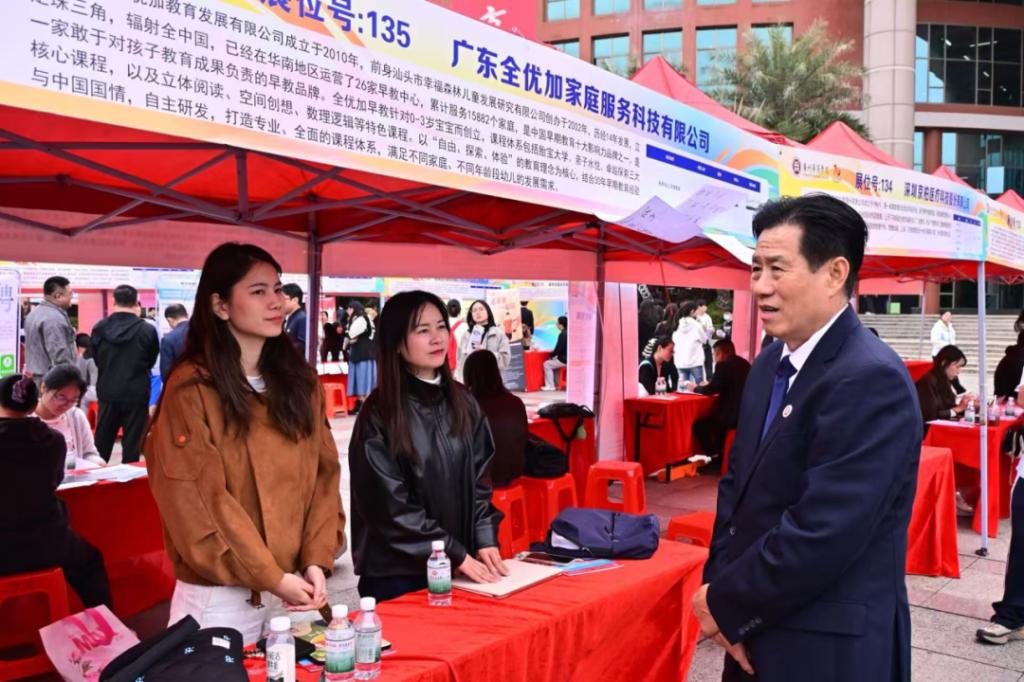 学院领导班子高度重视本次招聘活动,在王金道院长的带领下,学院领导班子、三办负责人及学生辅导员全程参与,深入现场跟进招聘会开展情况。活动期间,尽管天气时有波动,王院长等领导仍多次前往招聘区域,先后走访了广州增城区华商外语实验幼儿园、大参林医药集团股份有限公司等摊位,与企业负责人交流用人需求,同时了解用人单位对学院学生的评价与期待。广州增城区华商外语实验幼儿园负责人提到,此前已有太阳成tyc9728集团的实习生在园工作,学生们的专业素养与工作表现都很出色,希望后续能与学院建立更稳定的人才输送合作;大参林医药集团相关招聘人员也表示,十分认可学院学生的综合能力,期待有求职意向的同学积极投递简历,加入企业团队。