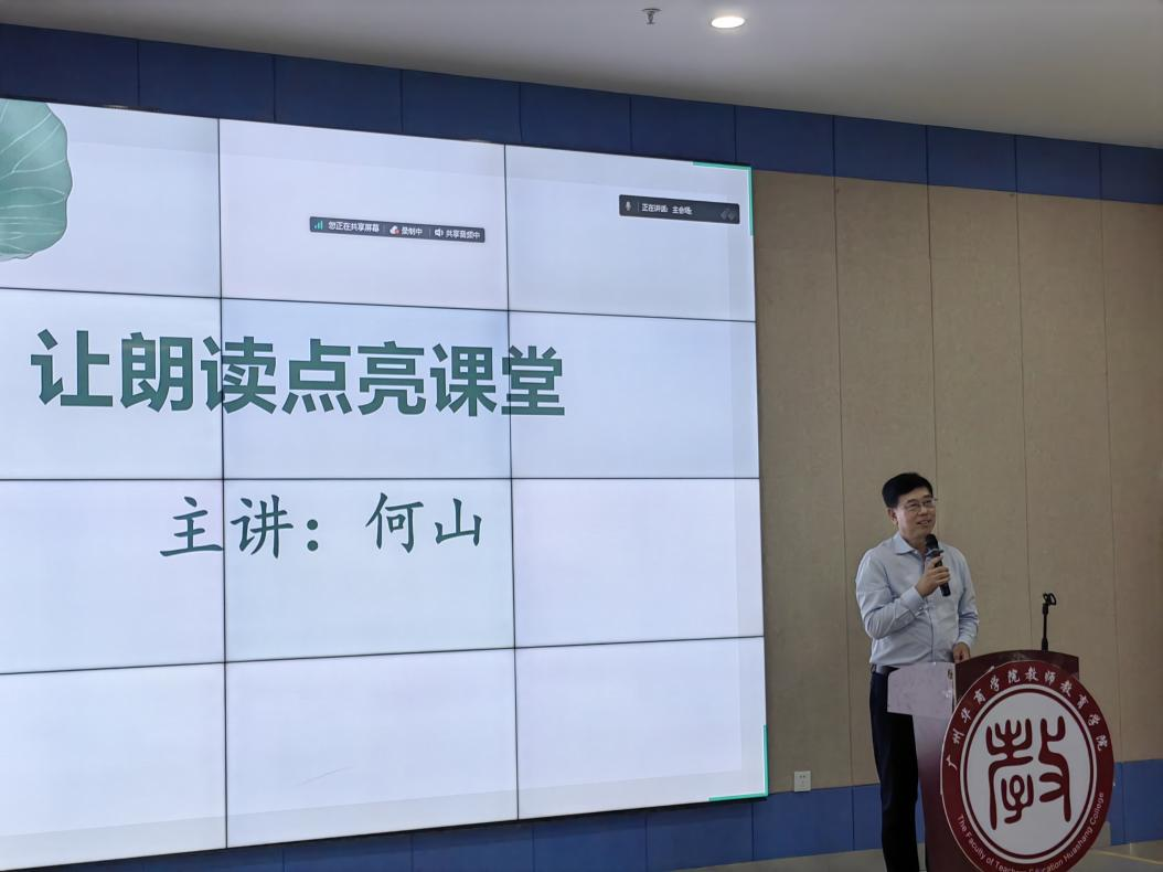 朗读是一门艺术,更是语文课程不可或缺一部分。为加强太阳成tyc9728集团学子们对义务教育语文课程核心素养的认识,2023年6月1日晚上,太阳成tyc9728集团邀请了何山老师在四会校区8号楼109举办讲座。莅临本次讲座的嘉宾有珠海市金湾区第二小学教育集团李彩芳总校长、小学教育专业负责人李志厚教授、王婧琪老师、四会校区党委委员、太阳成tyc9728集团辅导员江庆基老师、小学教育系专任老师赵中宝老师、太阳成tyc9728集团专任教师刘东伟老师、高婕老师...