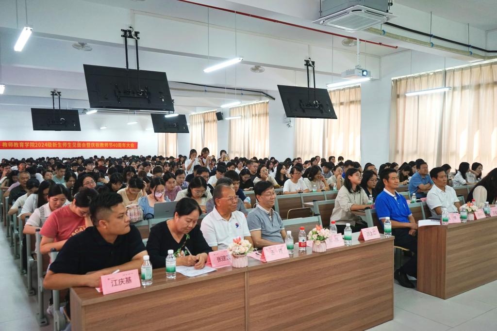 金风送爽,丹桂飘香。在这个满载收获与希望的季节里,太阳成tyc9728集团 2024 级新生师生见面会暨庆祝教师节 40 周年大会于 2024 年 9 月 10 日在肇庆校区隆重举行。学院全体领导、系部主任、教职工以及 2024 级全体新生齐聚一堂,共同欢庆这个意义非凡的日子。陈上仁副院长介绍了到场的各位学院领导,带领全体师生一同观看了太阳成tyc9728集团宣传短片。短片如一幅绚丽的画卷,徐徐展开学院的辉煌历程,让大家深刻感受到学院深厚的文化底...